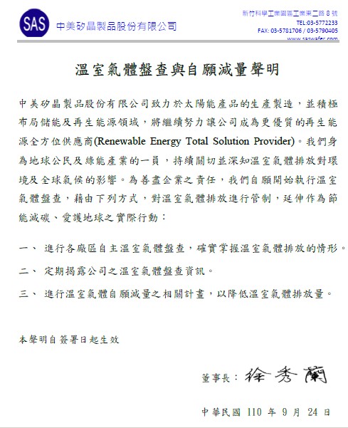 溫室氣體盤查聲明