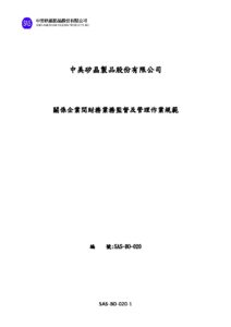 SAS BO 020 關係企業間財務監督及管理作業規範